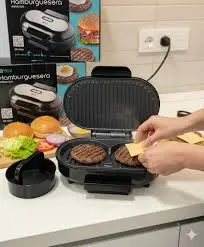 Su diseño compacto y ligero hace que la guardes fácilmente en cualquier rincón. Además, no solo cocina hamburguesas, sino también huevos fritos y más, haciendo que sea una máquina versátil para el día a día.